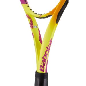 Les presentamos las Pure Aero Rafa. Vista en las manos del de Manacor, este diseño tan especial de la Pure Aero tiene las mismas características y jugabilidad que la versión estándar del mismo modelo. Además de ser un artículo de coleccionista, la Pure Aero Rafa te ofrece la jugabilidad incomparable de una de las raquetas más legendarias del tenis. Sin cordaje, la raqueta pesa 300 gramos, y es perfecta para jugadores de nivel intermedio con mucho nervio, aunque también funcionará muy bien para jugadores de nivel avanzado con potencia que busquen añadir velocidad y efectos a sus golpes en ataque. En esta actualización, Babolat reduce ligeramente la flexibilidad de la raqueta, y a pesar de que sigue siendo notablemente rígida, tiene buena capacidad de reacción y no lesiona tanto el brazo.